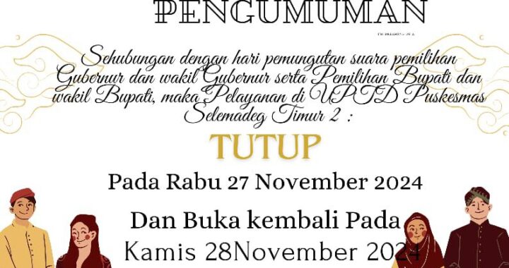 Uncategorized admin puskesmas seltim2 5 months ago 81 Continue Reading Previous: JADWAL POSYANDU BULAN SEPTEMBER 2025Next: PELAYANAN KB GRATIS Related Stories PENGUMUMAN Uncategorized PENGUMUMAN admin puskesmas seltim2 5 months ago 73 PELAYANAN KB GRATIS Uncategorized PELAYANAN KB GRATIS admin puskesmas seltim2 5 months ago 106 JADWAL POSYANDU BULAN SEPTEMBER 2025 Uncategorized JADWAL POSYANDU BULAN SEPTEMBER 2025 admin puskesmas seltim2 5 months ago 103 Uncategorized admin puskesmas seltim2 1 year ago 68