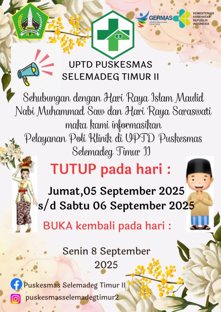 Uncategorized PENGUMUMAN admin puskesmas seltim2 5 months ago 74 Continue Reading Previous: PELAYANAN KB GRATIS Related Stories PELAYANAN KB GRATIS Uncategorized PELAYANAN KB GRATIS admin puskesmas seltim2 5 months ago 107 Uncategorized admin puskesmas seltim2 5 months ago 81 JADWAL POSYANDU BULAN SEPTEMBER 2025 Uncategorized JADWAL POSYANDU BULAN SEPTEMBER 2025 admin puskesmas seltim2 5 months ago 104 Uncategorized admin puskesmas seltim2 1 year ago 68